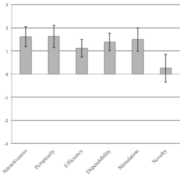 efficiency, dependability, stimulation, and novelty on a scale from -3 to 3.